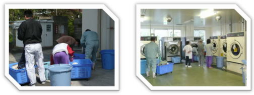 衣類・布団等の仕分け、洗濯から乾燥までを行います。